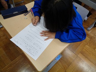 実は1年生が追い上げてきています。休み時間も繰り返し練習する1年生が増えているのです。そこで先輩としての意地! それを聞いた一人の子どもが「みんな、がんばろ~!」と声を上げました! そして2年生、一致団結! すごいやる気でがんばっていました!休み時間は、ぜひ、賞を目指してチャレンジしてほしいです。