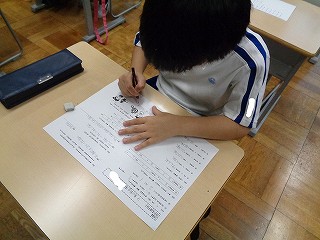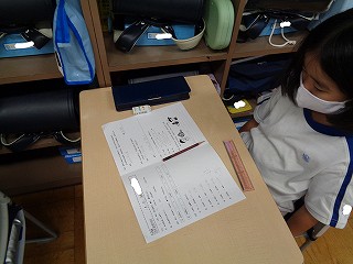 算数の様子です。「かさ」のテストをもう一度行いました。