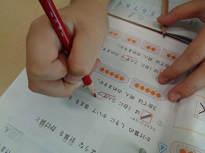 教科書にアンダーラインを引いて一つ分の数(1あたりの数)を確認しました。