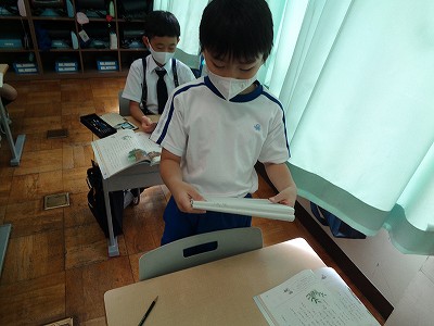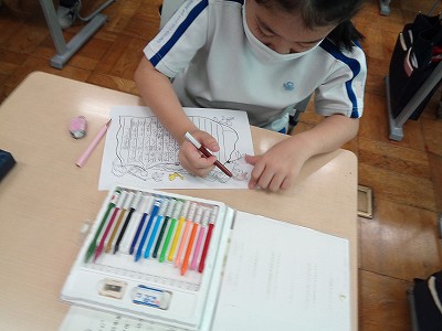 国語の時間は、「お手紙」のまとめを行いました。お手紙をもらったがまくんになりきって、かえるくんにお手紙を書く活動です。