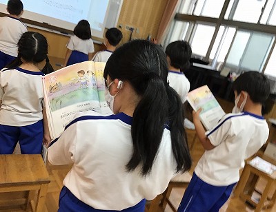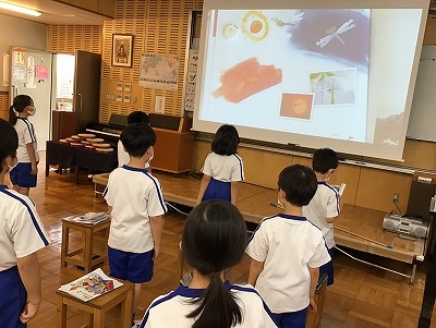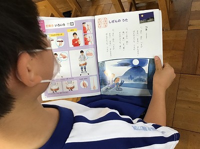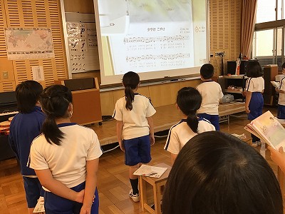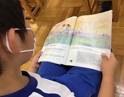 「♪とんぼのめがね」の「ゆうやけぐ~もをとんだから~」の歌詞からは、秋の様子が伝わるね!と発言してくれた男子。みんなで、今の季節を感じ、やさしい気持ちになって歌うことができました。
