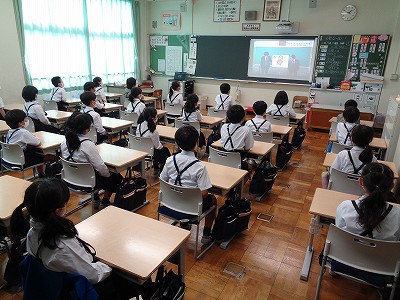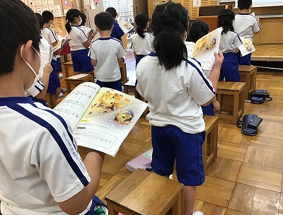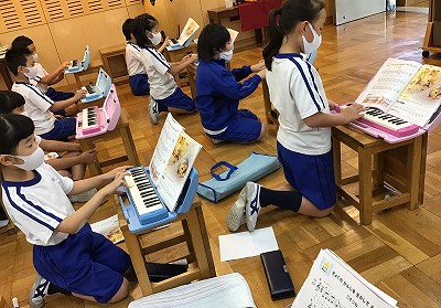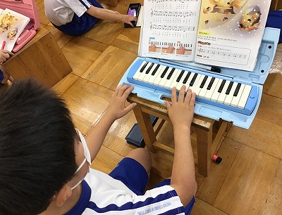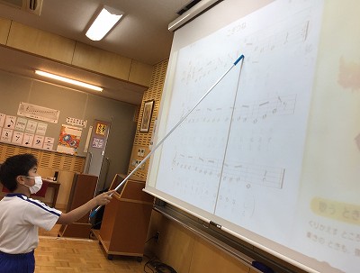 歌唱の後は「ドレミ…」で歌う練習です。鍵盤ハーモニカ奏の準備です。