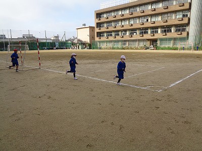 朝根っこタイムは、マラソンです。冷たい気温の中、一人ひとりが目標を決めて走りました。友達と全力疾走です。