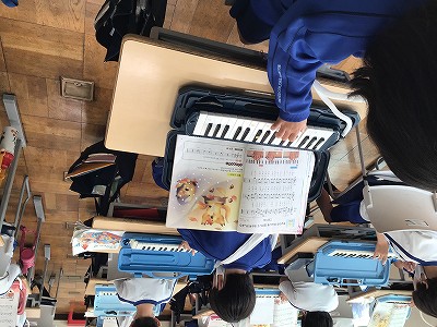 教室では「♪こぎつね」の鍵ハモ練習です。「ラファドラソ」の壁を越えられず、もっと練習が必要な2年生には、個人練習を呼びかけています。