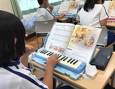 教室では、「♪こぎつね」に「ソ・ソ・/ソソソ・」の伴奏を付ける練習を取り入れて、音の重なりを楽しみました。昼休みには、特訓組と鍵ハモの“エア練習”を行いました。