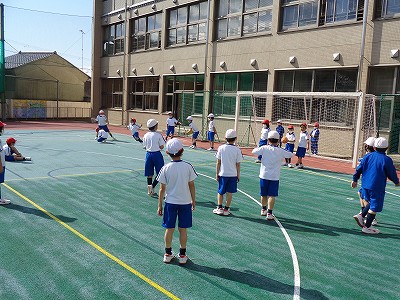 金曜日の中間休みは、2年生がグラウンドで遊べる時間です。ドッジボールが大好きな2年生。