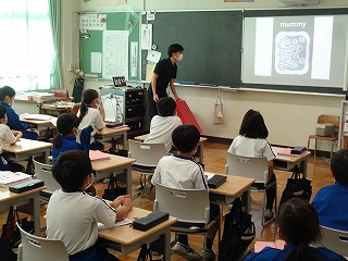 先生が授業準備をしている時から、子ども達が先生役で英語ビートの歌を進めてくれました。