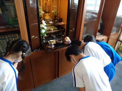 黙想。目を閉じて自分自身のやるべきこと・できることを考えます。心を落ち着かせるひとときになりました。