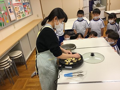 今日は、子どもたちが楽しみしていたサツマイモの試食です。