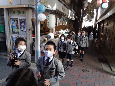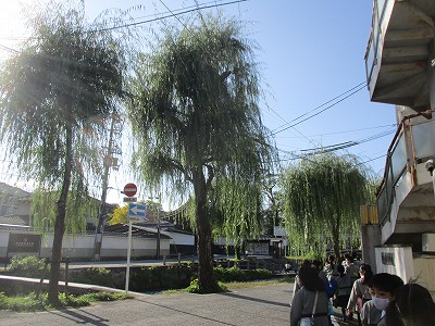漢字ミュージアムまでの道のりを紹介します。「場を考えて行動する」という“めあて”で学校を出発しました。