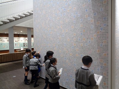 1・2校時は、校外学習「漢字ミュージアム」に行きました。体験型の展示に触れて、漢字への興味・関心を膨らませることがねらいです。
