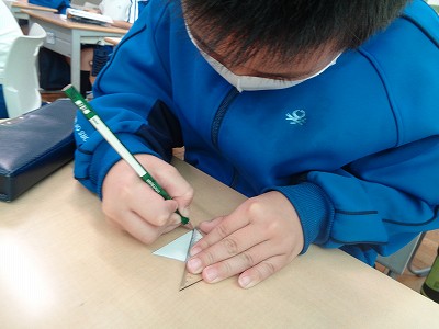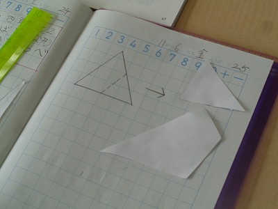 また、三角形や四角形と言えるわけも確認しながら、学習を深めることができました。切り方とできる形の関係を気づくことで楽しく活動できた時間になったことでしょう。