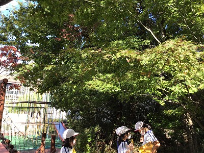 モミジは、少し黄色くなっていました。「かわいい赤ちゃんの手のようです」と、まとめを書いている子どもたちがいました。