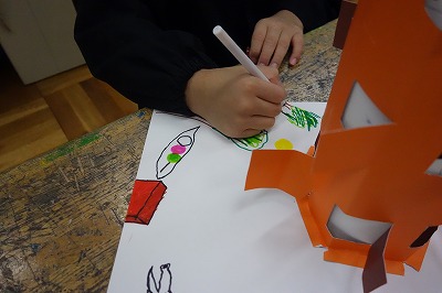 いよいよ完成に向けての時間です。窓を開けたときに見える絵が完成すれば、筒型にして立ち上げます。