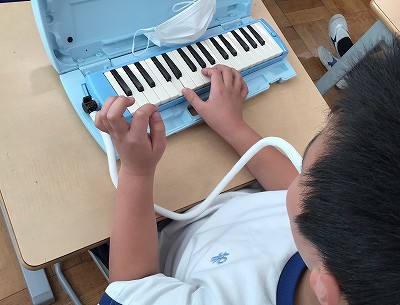 歌唱の後は、鍵盤ハーモニカ練習です。