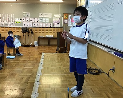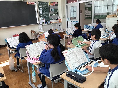 音楽室で「ミミレミ・ファファレ・・・・・♪」と口ずさみながら、鍵ハモのエア練習です。