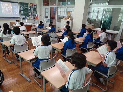 今朝は、礼拝です。朝の用意をテキパキと行い、良い姿勢で礼拝に臨むように声かけしています。