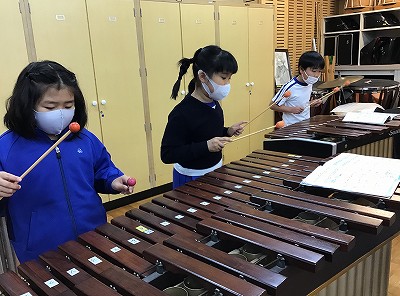 歌うメンバーと木琴の伴奏メンバーに分かれ、歌と木琴による合奏が完成しました。