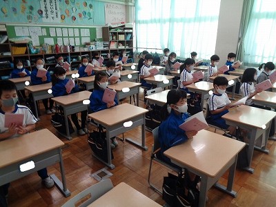 今日も「♪みんなで九九」を歌って、音楽の時間が始まりました。