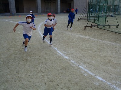 自分のペースを崩さないように、グラウンドを一人3周走りきりました。