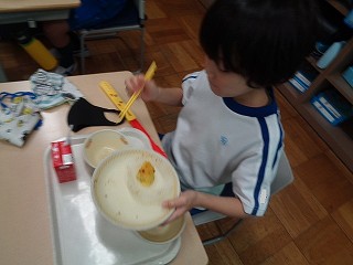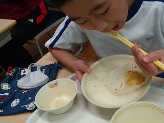 2年生が収穫した“サツマイモ”を使った献立「スイートポテト」を味わいました。