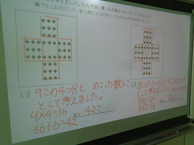 そして、全体で図の考え方を共有し、○や☆、◇の数を求めました。