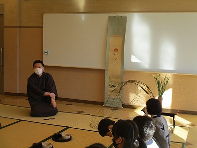 新年のご挨拶をしました。まず、お軸とお花の説明です。