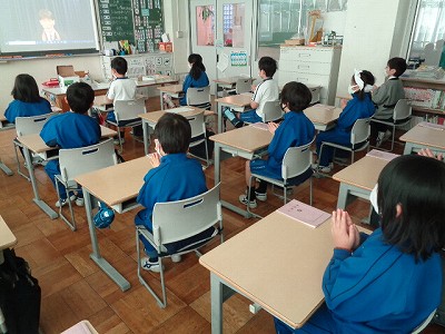 朝の時間は礼拝です。良い姿勢で礼拝に臨み、今日一日のめあてを持ちます。