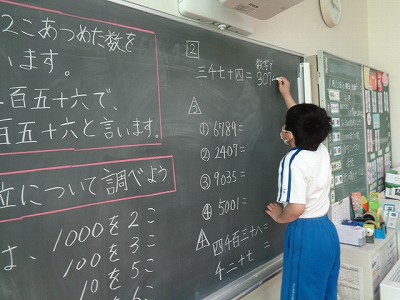 1000をこえる数字を漢数字に表したり、漢数字を数字に表したりと、空位に気をつけて問題を進めました。