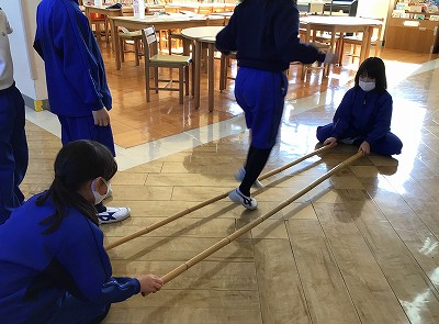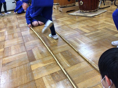 今日も3拍子に合わせてバンブーダンスに取り組みました。慣れてきた友達が増え、あちらでも、こちらでも「できた~!」の声が聞こえてきます。