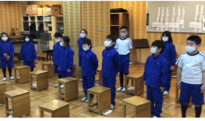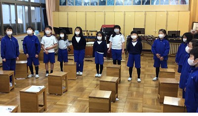 「♪ウンパッパ」の二部合唱を仕上げようと、歌唱しています。
