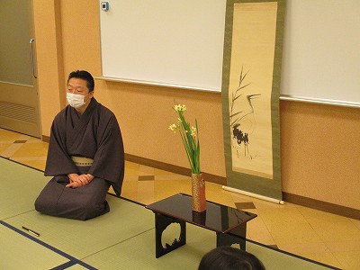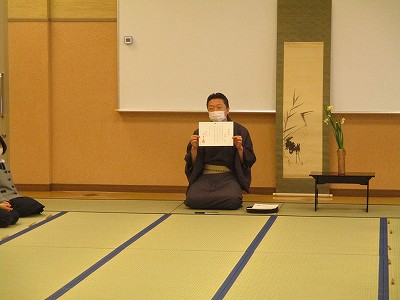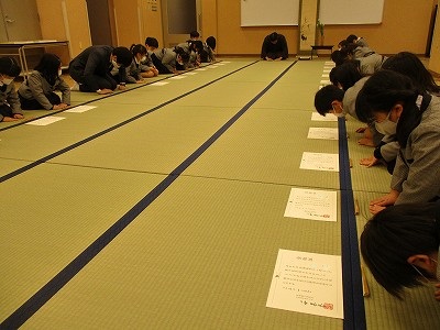 お客様と、おもてなしをする側に分かれて、お茶のお点前の練習です。