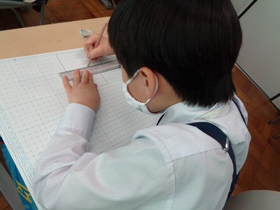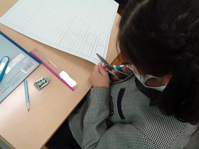 工作用紙に同じ長さの長方形を2つずつ3種類描き、