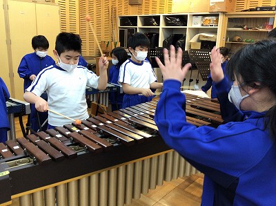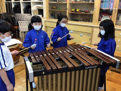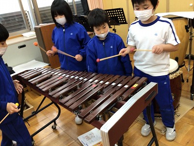 「ソレシレソー」の基本パターンをもとに、スピードや強弱、また、音を分散させたり和音にしたり…と、演奏方法をレクチャーするところから学習をスタートしました。