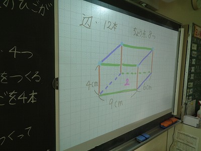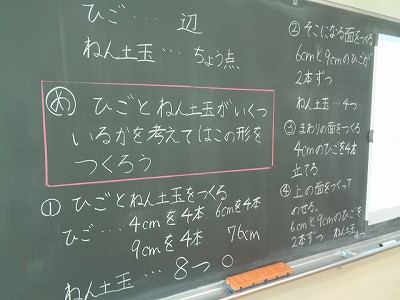 何㎝の竹ひごがいくつ必要か、ねんど玉は全部で何個用意すればいいか、はこ作りのためのキーワードをノートにまとめました。