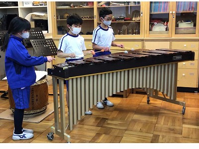 今日は「音楽時計」の発表の日です。2年生では初めてのグループによる“音楽づくり”に挑戦しています。