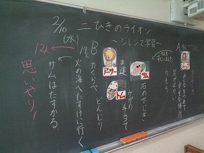 今週は、ジレンマ学習「二ひきのライオン」を行いました。