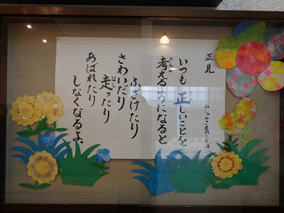 今日の朝は、小学校玄関に掲示されている「おしゃかさまの言葉」についてお話しました。