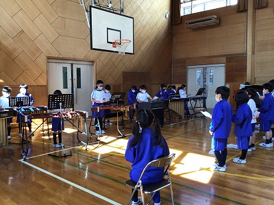 交互に練習し合った後は、教室にいる鍵ハモパートのみんなに集まってもらい、歌と楽器の合奏で仕上げました。