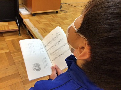 雰囲気をがらりと変えて、「♪音楽のおくりもの」を歌っています。「ウンタン/ウタタン」の手拍子に合わせて歌う練習をしています。