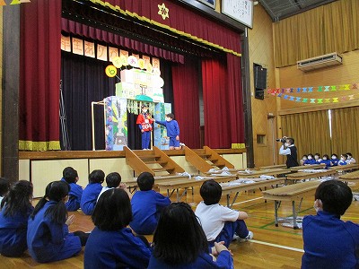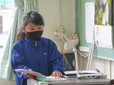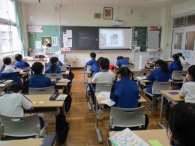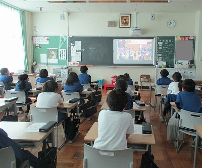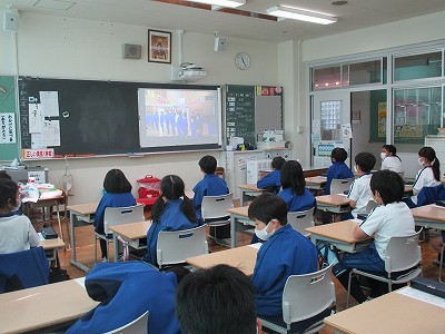 1,2年生の発表が終わって体育館から教室にもどった後は、Live中継で『6年生ありがとうの会』に参加しました。子どもたちは、会場にいるかのように、発表が終わるごとに拍手をしていました。