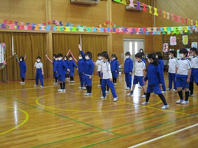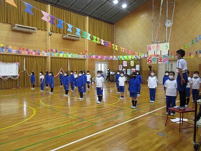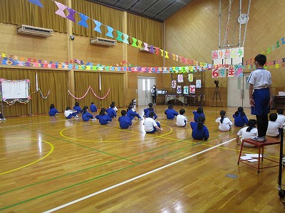 3,4校時は『6年生ありがとうの会』です。今年は、コロナ感染症の影響で全校が体育館に集まって開催することができないので、2学年ずつ6年生が待っている体育館に行って、学年の発表をしました。