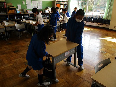 お掃除の時間です。みんなに黙掃除が身についてきています。