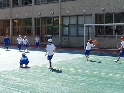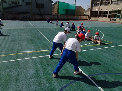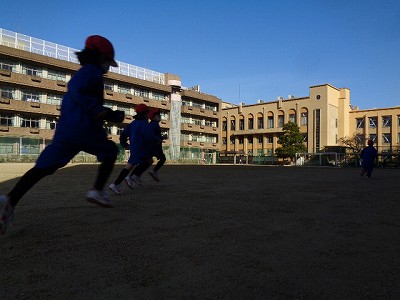 みんな元気よく、中高のグラウンドに出て、自分のペースで3周走りました。