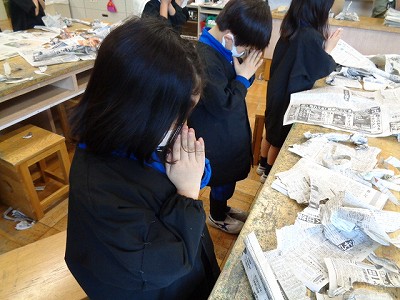 14時46分には、被災地の一日の早い復興を願うとともに、震災で被害に遭われた全ての方々に追悼の意を表するため、全校で黙祷を行いました。