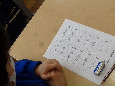 この一週間で「睦月」「如月」「弥生」「卯月」「皐月」「水無月」「文月」「葉月」「長月」「神無月」「霜月」「師走」の全てを覚えられた子がたくさんいました。
