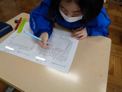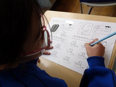 「3けたの足し算」や「かさ」「算数謎解き」「百マス計算」などのプリント学習に取り組みました。確実に力をつけて、3年生に進級してほしいです。