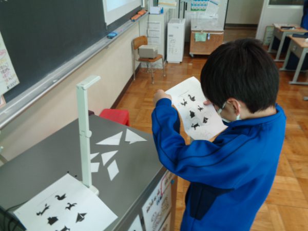 「お家」や「きつね」「白鳥」など、シルエットを参考に組み合わせたり、重ねたりしながら、楽しく作りました。