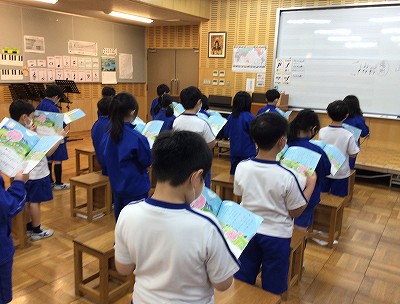 「♪春が来た」の歌唱練習から、音楽の時間が始まりました。