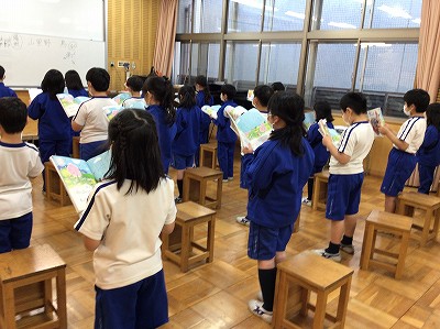 山に里に野に、春が来た喜びを歌っています。その気持ちをイメージしようと、歌詞の音読にも力を入れました。
